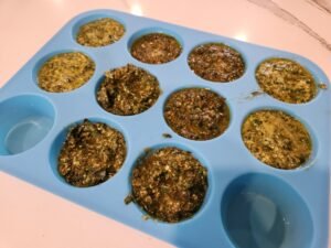From there, we started to grow one basil plant per two tomato plants and started freezing pesto into pucks using our silicon muffin pan. As time progressed we continued and also grew basil throughout the garden as a companion plant and for more basil to eat along with medicinal purposes.