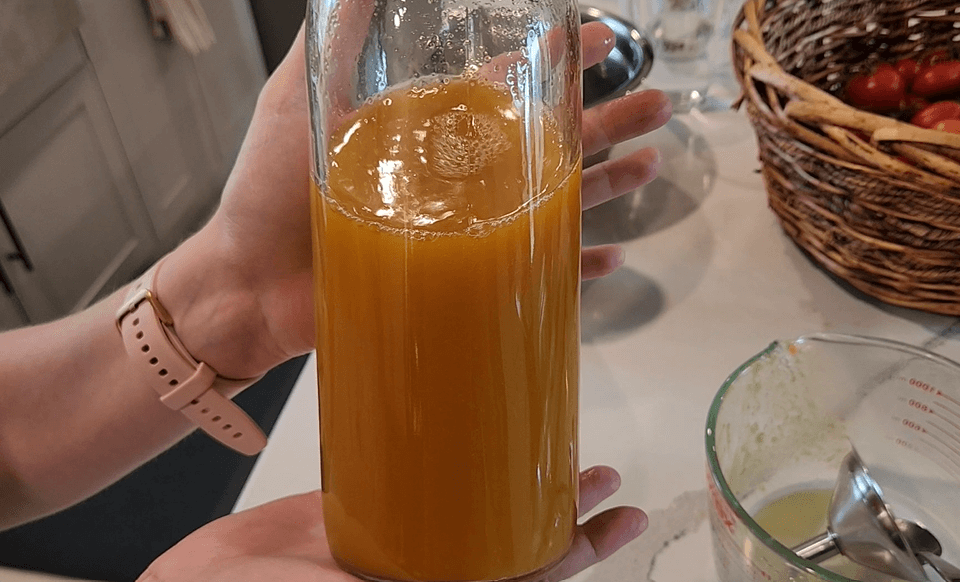 Fire cider is ready to strain after 4–6 weeks, once the liquid turns a deep golden color and smells tangy with a little heat. That’s the sign that the herbs and roots have fully infused their benefits into the vinegar.
